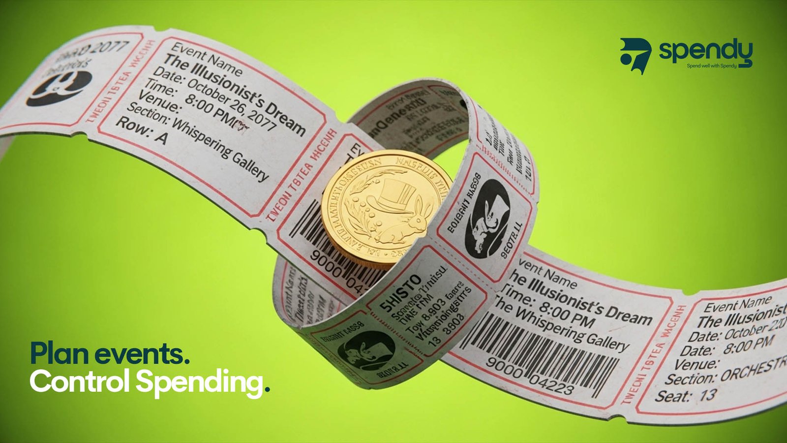 Our Solution We designed a logo mark that brings together two event tickets—symbolizing planning and collaboration—and a coinrepresenting spending, payments, and financial clarity. The combination communicates Spendy’s core promise: events + spend management in one smart system.